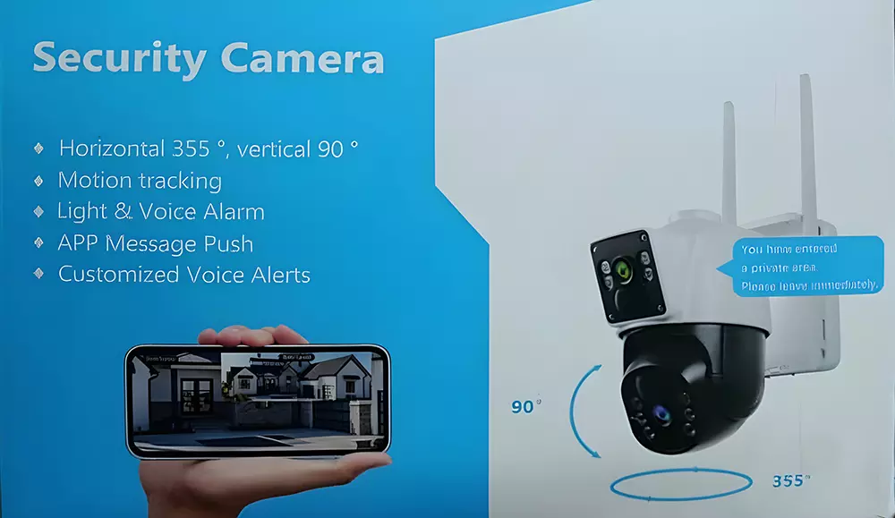 این دوربین با پشتیبانی از نمایش دو تصویر همزمان، چرخش 355 درجه، تشخیص حرکت هوشمند و هشدارهای امنیتی، گزینهای کاربردی برای باغ، ویلا، کارگاه، زمین کشاورزی، محوطههای صنعتی و فضاهای خارج از شهر محسوب میشود.